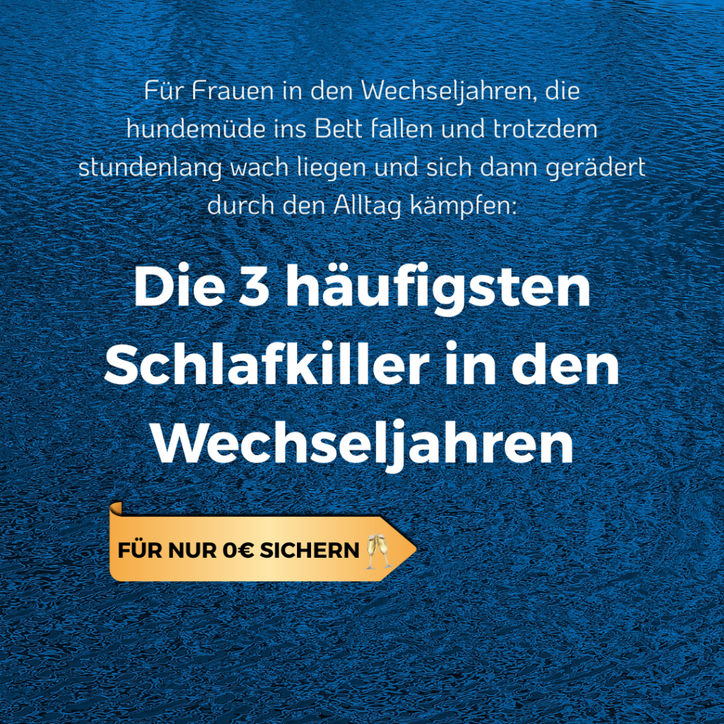 Im kostenlosen Schlaf-Ratgeber erfährst du die wahren Gründe, warum dein Schlaf in den Wechseljahren brüchig wird – und wie du wirksam dagegen vorgehst.